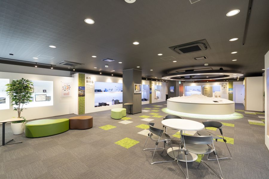最後に当社のショールームスペースをご紹介します。ここでは、GSユアサの歴史や製品、数々の受賞実績やイメージビデオの上映を行っています。