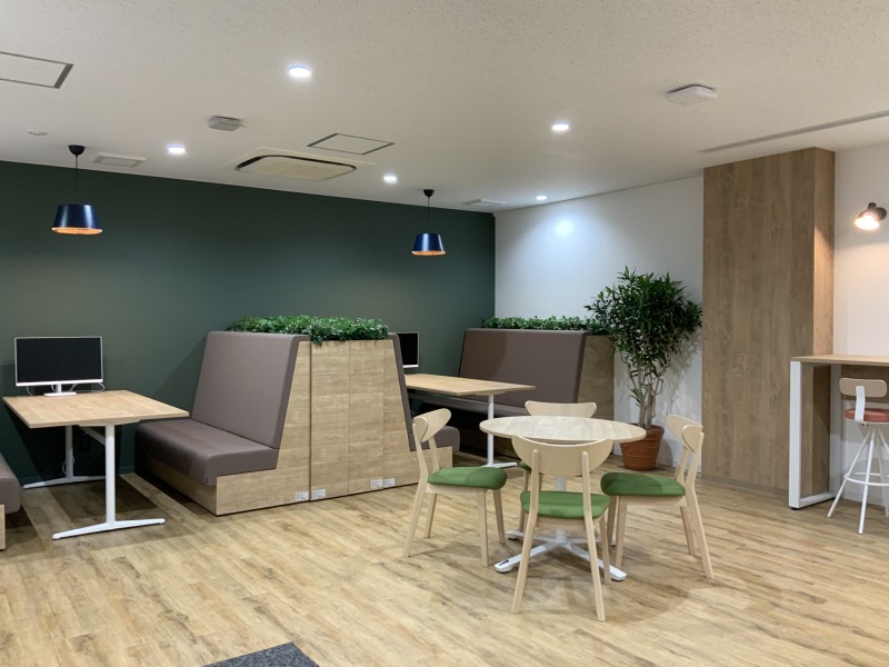 リラックスできるソファ席や集中できるカウンター席が並び、いつものオフィスとは違う、開放的な雰囲気となっています。